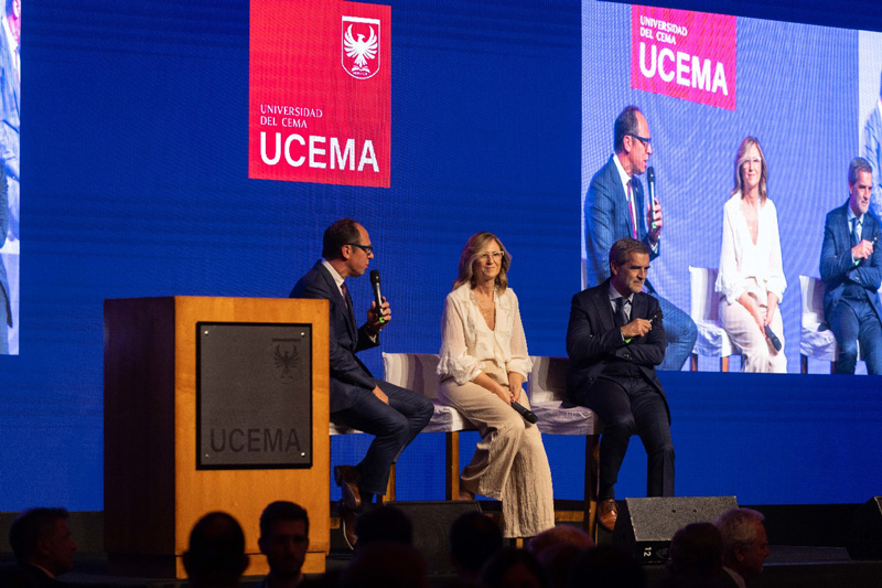 Durante la noche, tres líderes empresariales compartieron su testimonio sobre el compromiso de sus compañías con el Fondo de Becas UCEMA: Mauricio Canineo (CEO de Pirelli), María Inés del Gener (CEO de Deloitte) y Sebastián Sosa (Presidente de RE/MAX). Cada uno destacó cómo, desde su rol, buscan impulsar una educación que forme profesionales íntegros y generen impacto positivo en la sociedad.