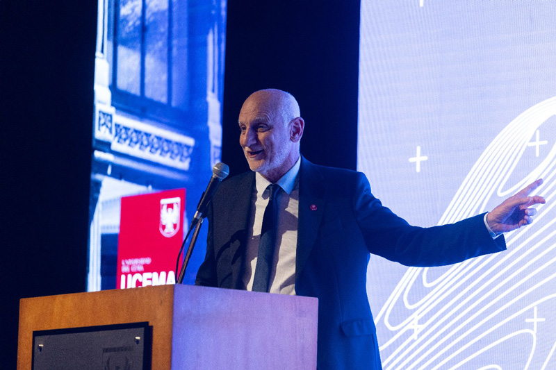 “Esta noche no se trata solamente de cifras o metas, sino de personas: de los jóvenes talentosos que, gracias a la generosidad de todos ustedes, pueden acceder a una educación que cambiará sus vidas”, expresó el rector Edgardo Zablotsky, quien agregó: “Cuando un joven recibe una beca en UCEMA, no solo accede a una formación académica de excelencia; accede a la posibilidad de descubrir ese poder interior. Aprende que la libertad no consiste en hacer lo que uno quiere, sino en querer aquello que es justo, en elegir con propósito. Esa es la verdadera educación: la que no se limita a transmitir conocimientos, sino que enseña a orientar la vida hacia un sentido.”